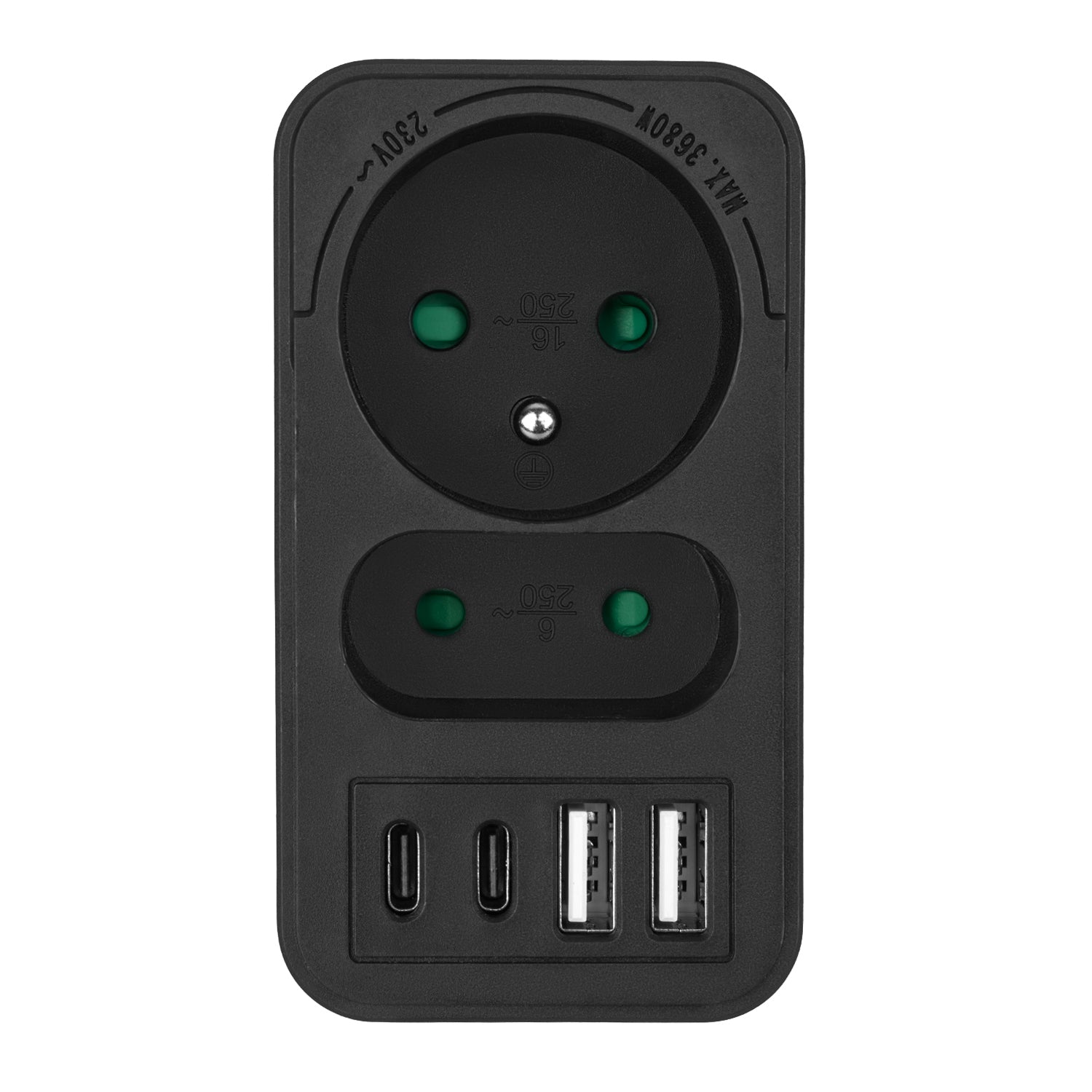2x rozbočovač 2 zásuvky 2x USB-A 2x USB-C černá