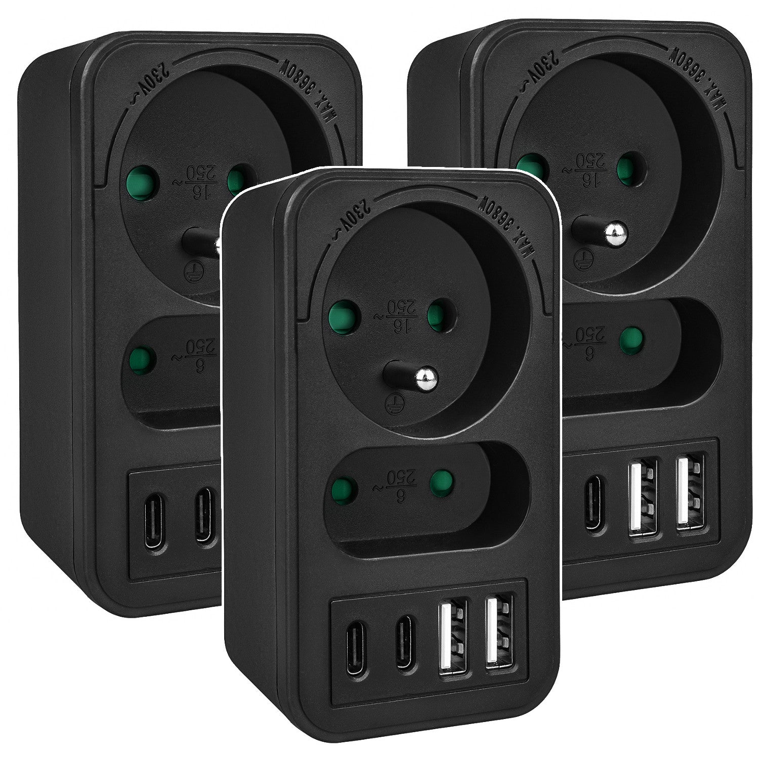 3x rozbočovač 2 zásuvky 2x USB-A 2x USB-C černá