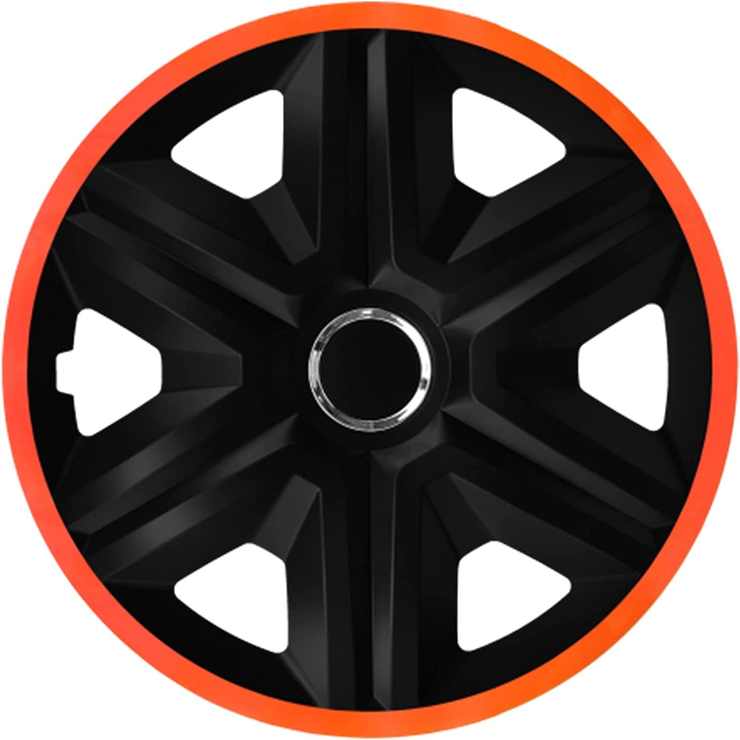 NRM Fast Lux kryty kol pro ocelové ráfky Dvoubarevné kryty kol Sada 4 ks pro automobily Vhodné pro většinu značek a ráfků ABS plast (černá/oranžová, 14")