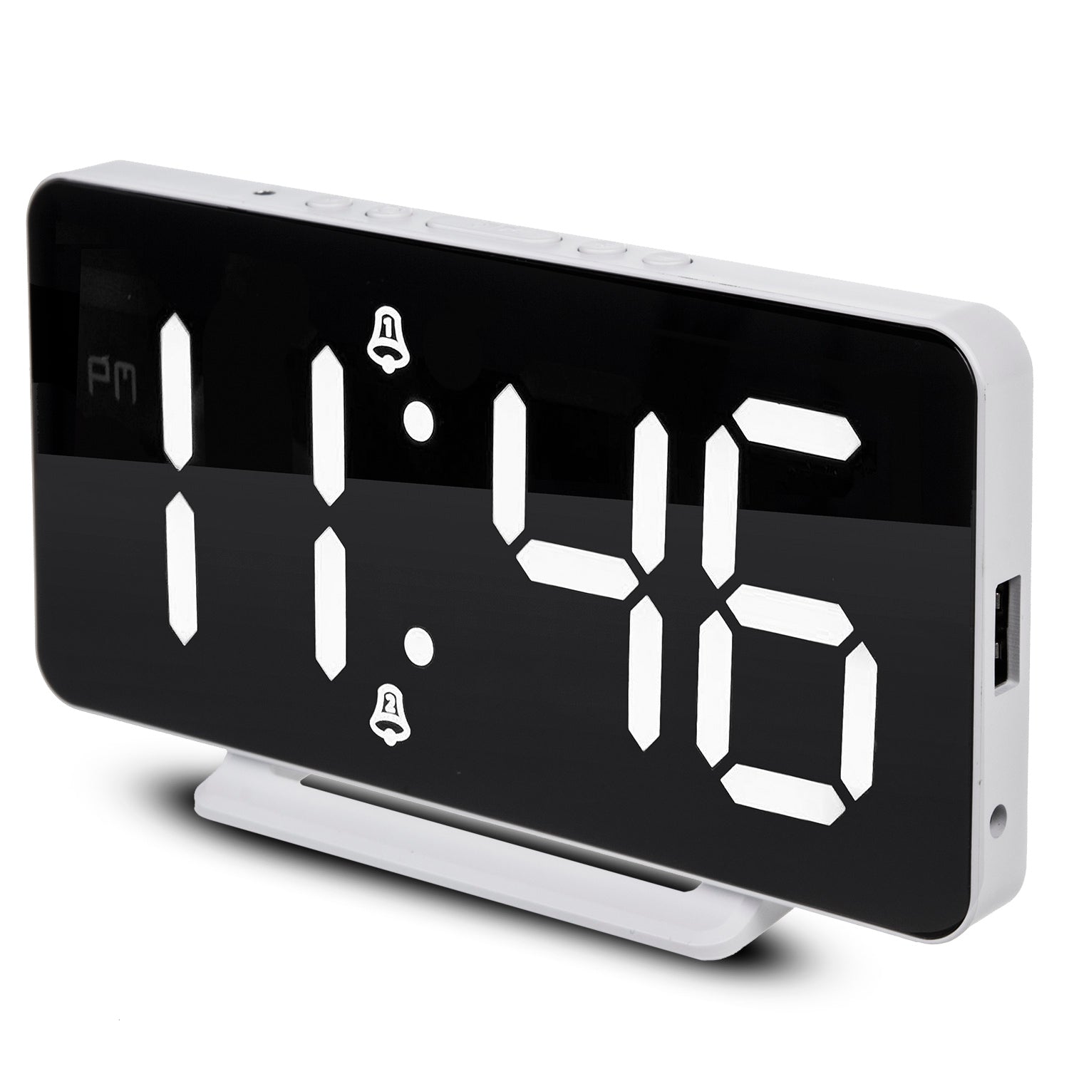 Budík s LCD displejem Teploměr s pamětí teploty Datum, hodiny Bílý
