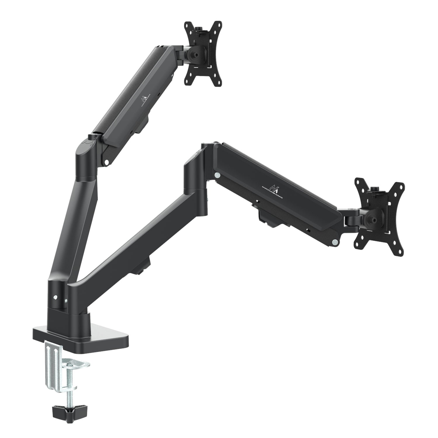 Dvoumonitorový držák Maclean MC-134 pro monitory s úhlopříčkou 17 až 32 palců je ideálním řešením pro lidi, kteří používají dvě obrazovky současně a očekávají maximální pracovní komfort. Díky dvěma nezávislým ramenům lze každý monitor umístit přesně tak, jak potřebujete - s naprostou volností nastavení, bez námahy a s dokonalou stabilitou. Jedná se o nejmodernější nástroj, který je ideální pro kancelář, práci na dálku i profesionální a herní pracoviště s více obrazovkami.