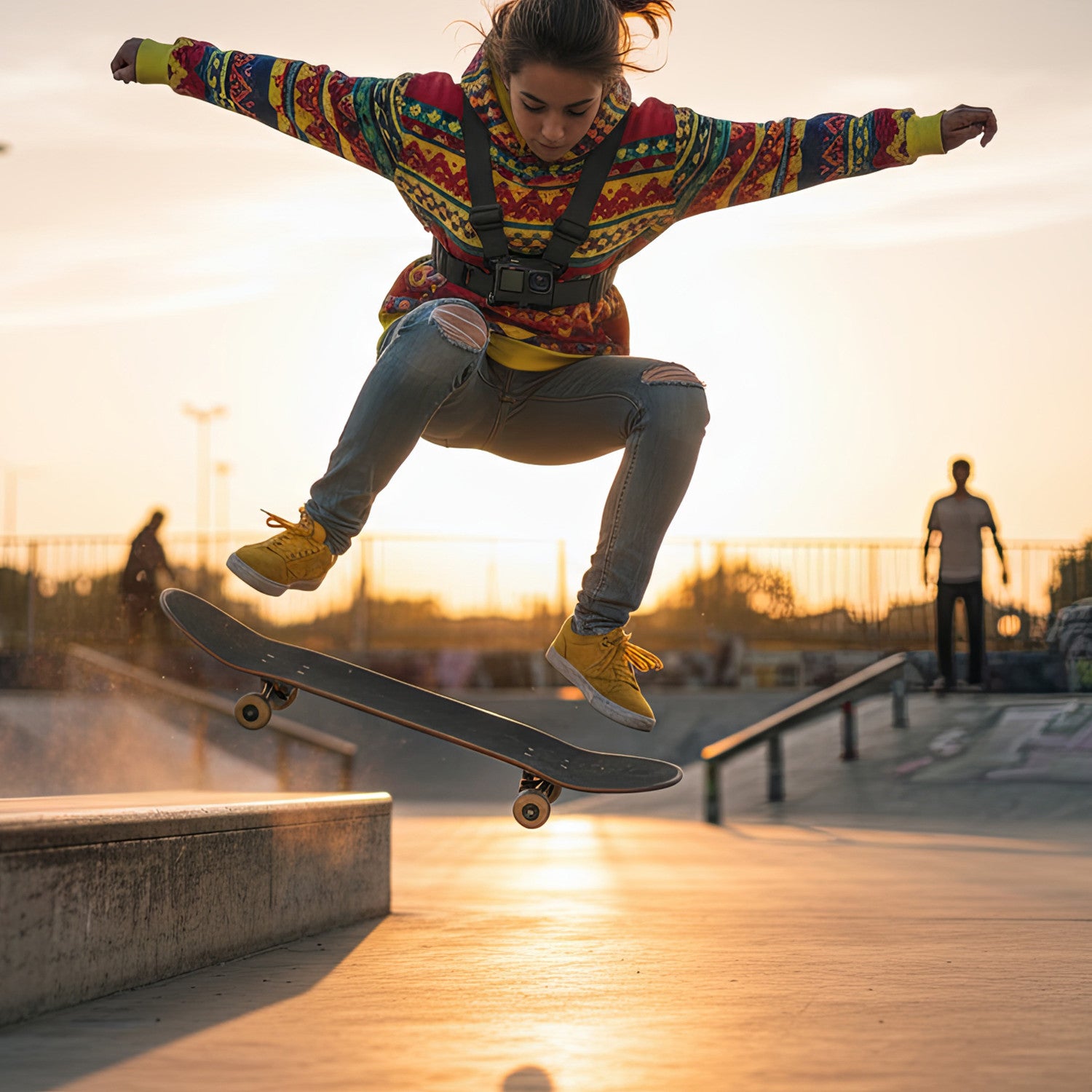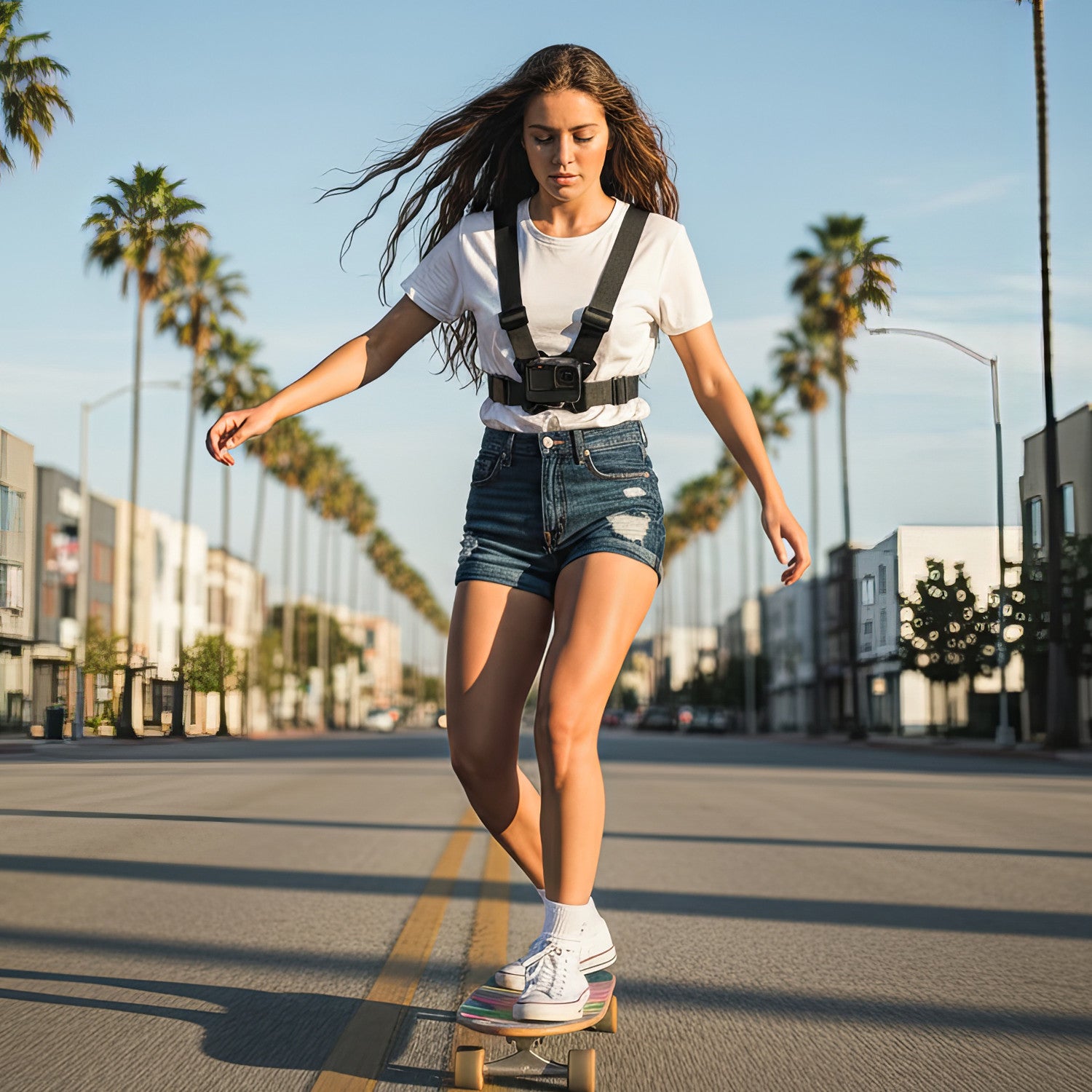 Postroj umožňuje připevnit na hrudník kameru GoPro nebo telefon. Mohou je používat muži i ženy, lidé s drobnou postavou i dobře stavění. To vše díky široké škále nastavení a vysoké flexibilitě upevňovacích popruhů.