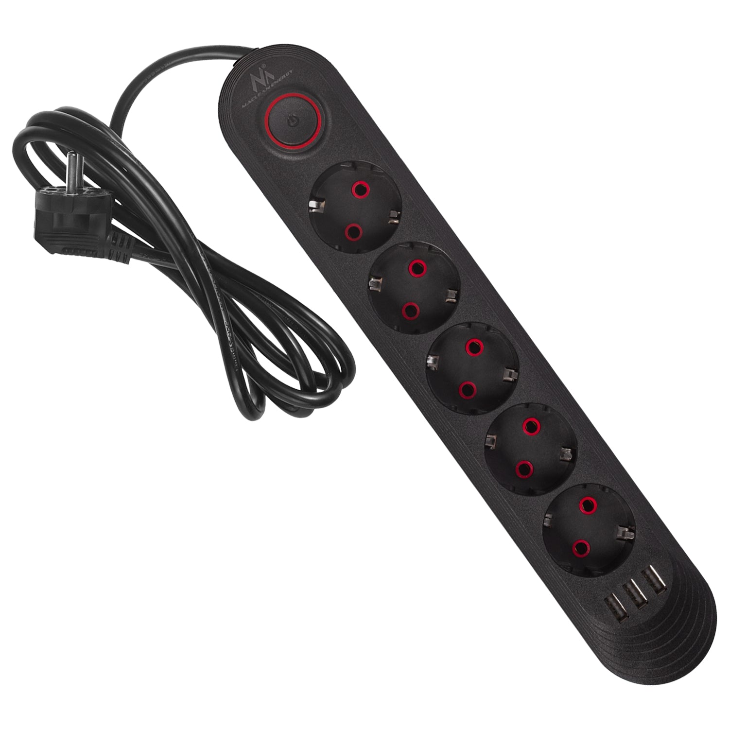 NAPÁJECÍ LIŠTA S 5 VÝSTUPY A 3 PORTY USB MACLEAN MCE395 - SPOLEHLIVÉ ŘEŠENÍ PRO DOMÁCNOST I KANCELÁŘ