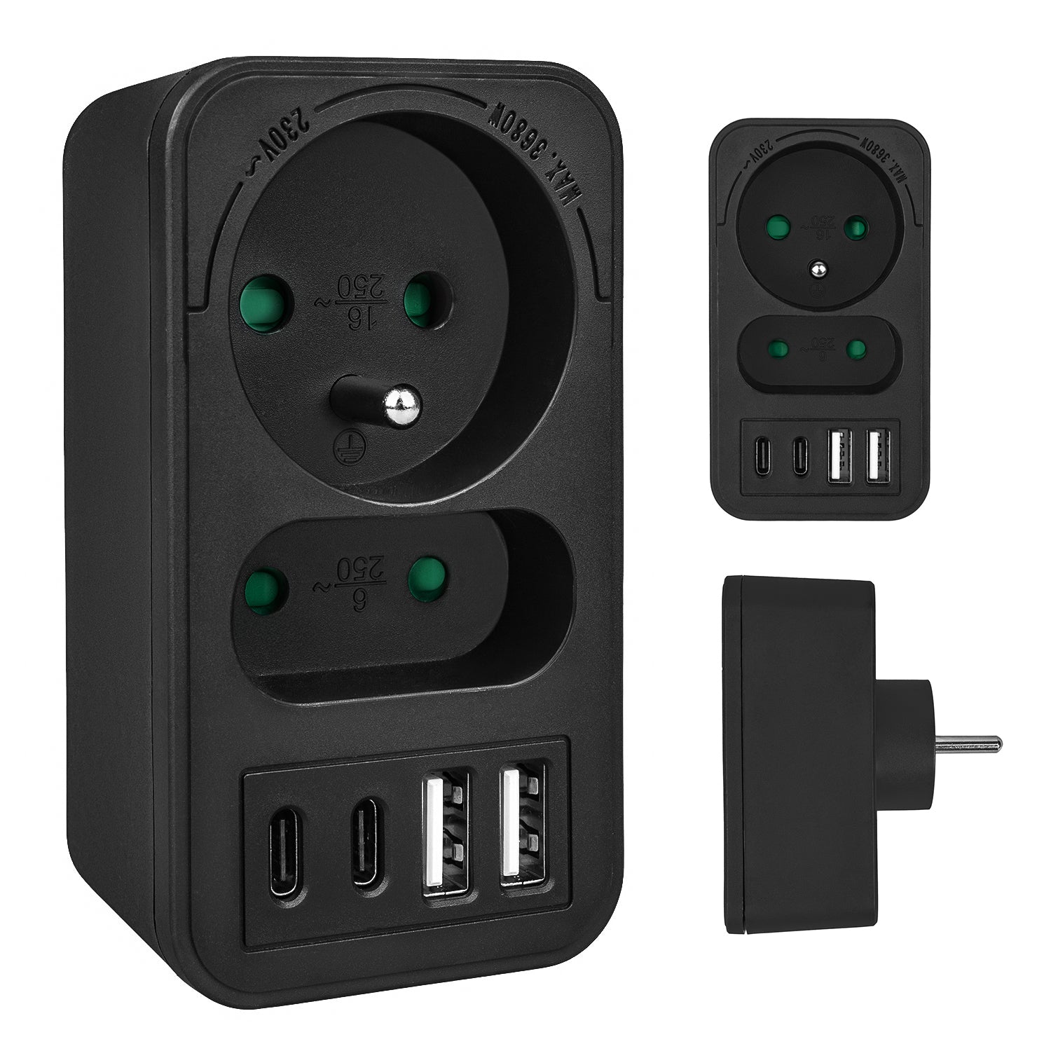 - Splitter se 2 zásuvkami, 2xUSB A, 2xUSB C MCE249 F/B