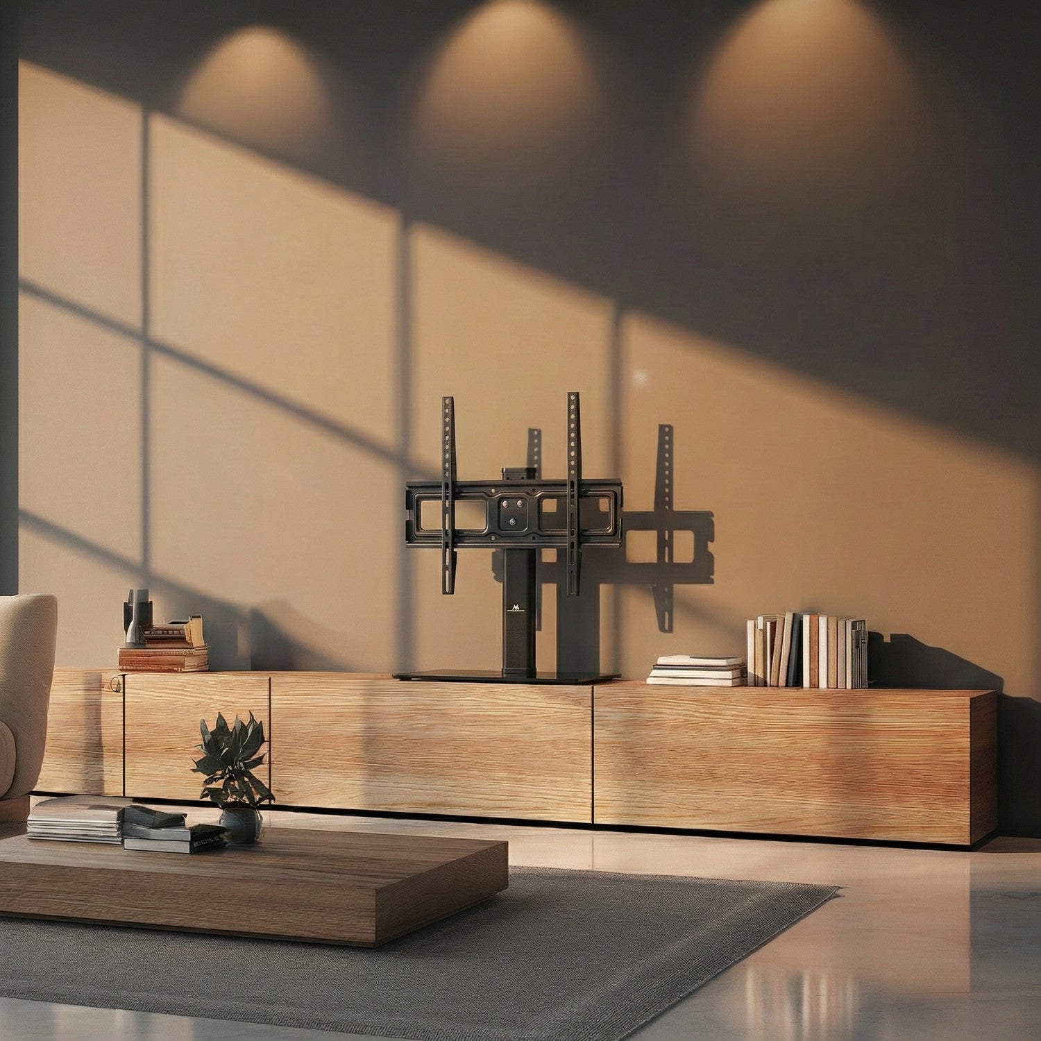 Zdokonalená základna z tvrzeného skla zajišťuje stabilitu a odolnost televizorů a obrazovek o hmotnosti až 40 kg. Podstavec je navíc vybaven protiskluzovými kluzáky, které chrání povrch před poškrábáním. Díky třem úrovním nastavení podstavce - 306 mm, 356 mm a 406 mm - můžete snadno přizpůsobit výšku obrazovky svým preferencím.