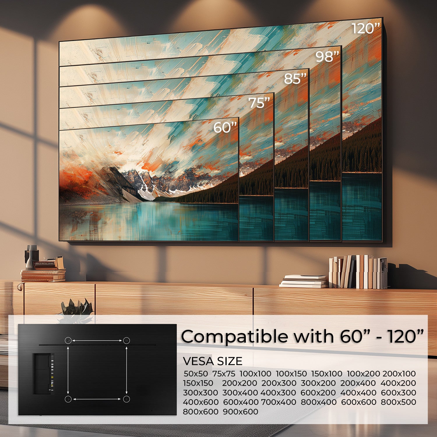 - Barva: Vhodná pro televizory s úhlopříčkou od 60" do 120" (nebo větší, pokud hmotnost nepřesahuje 120 kg a standard VESA je s držákem kompatibilní)