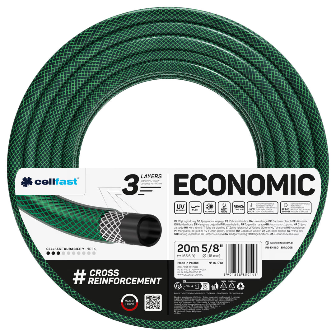Zahradní hadice Cellfast, třívrstvá, s křížovým polyesterovým opletem, 5/8", 20 m, Economic
