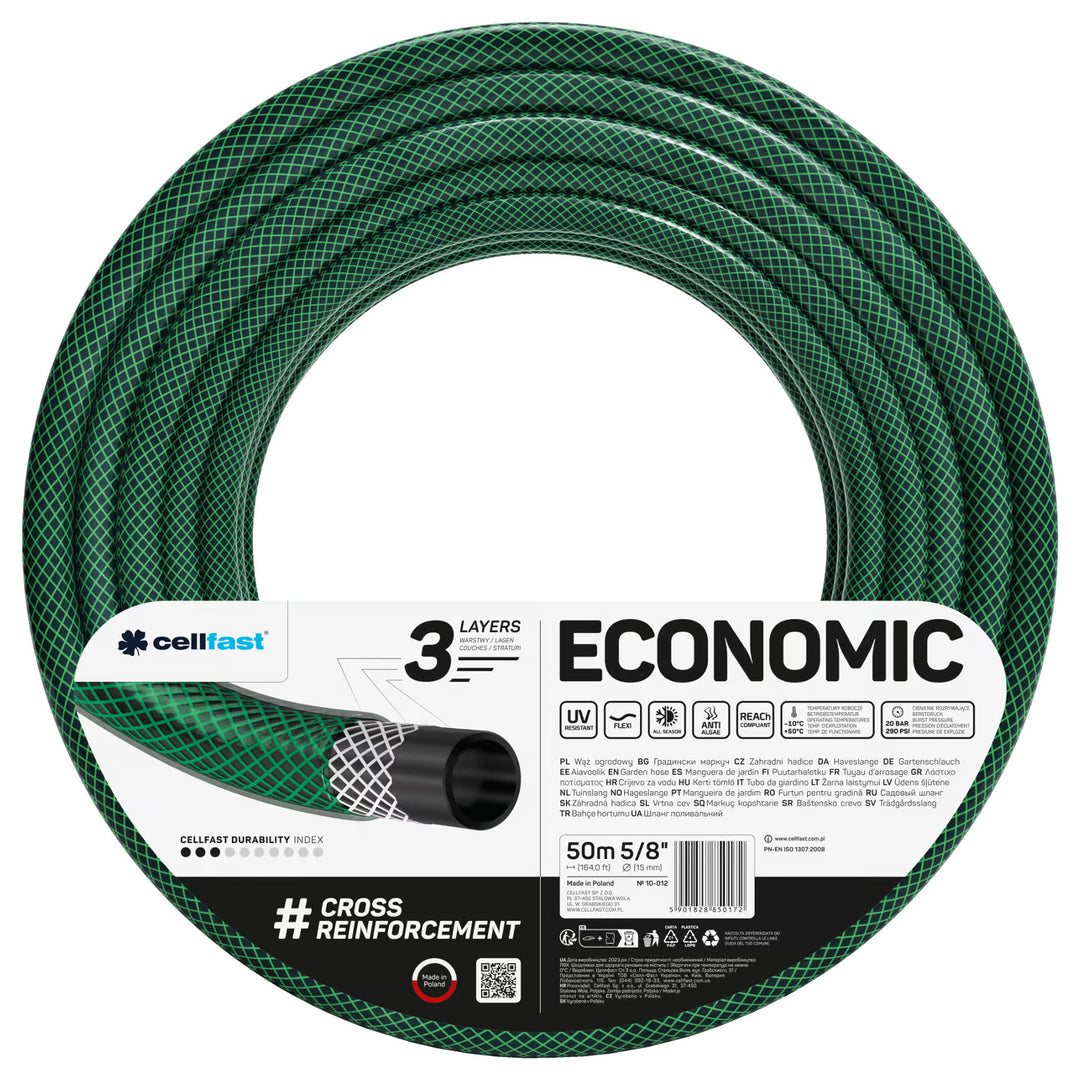 Zahradní hadice Cellfast, třívrstvá, s křížovým polyesterovým opletem, 5/8", 50 m, Economic
