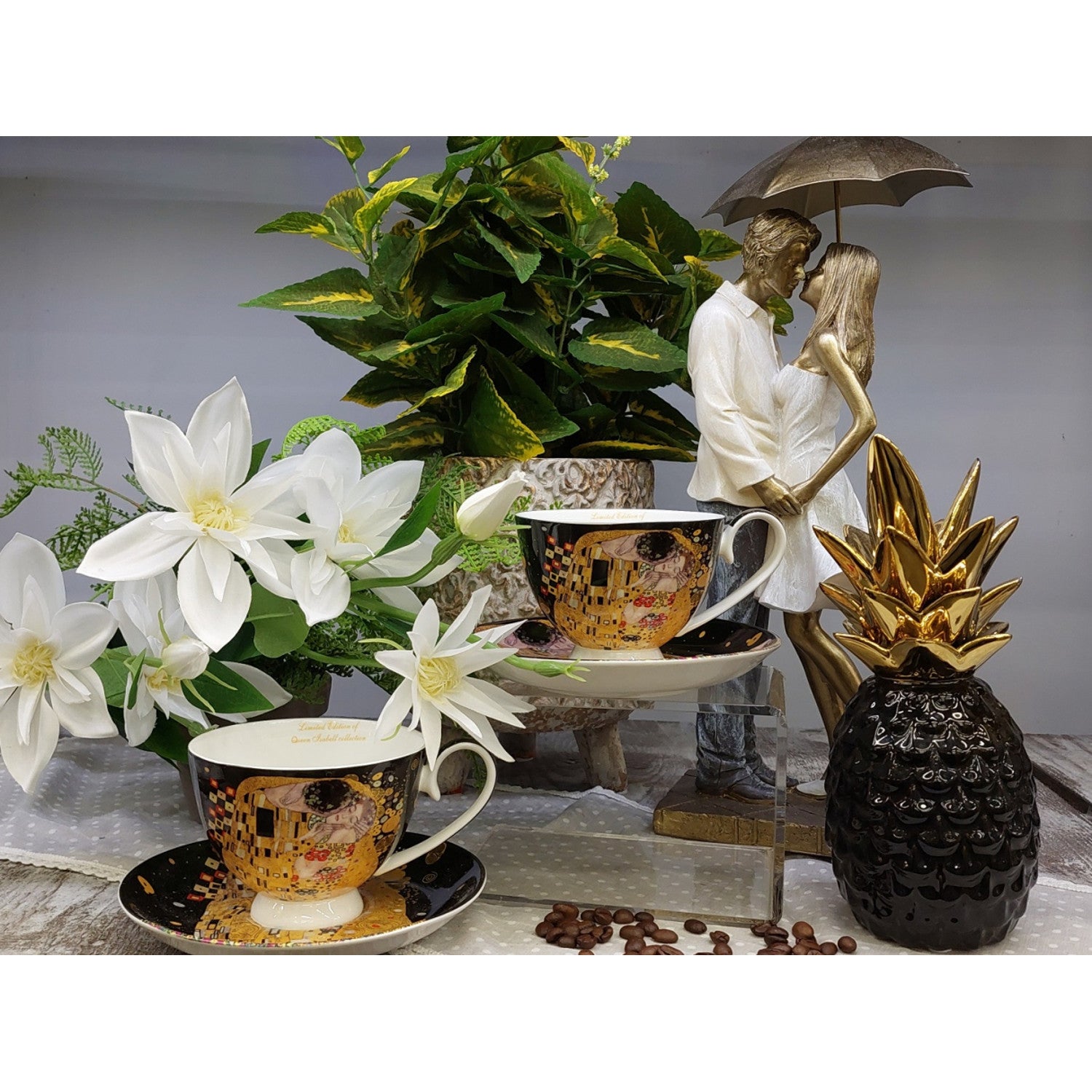 Představte si, že pijete ranní kávu nebo večerní čaj ze šálku ozdobeného jedním z nejslavnějších obrazů v dějinách umění - Polibkem Gustava Klimta. Není to obyčejný porcelán - je to malé umělecké dílo ve vašich rukou, které vám každý den připomíná krásu, eleganci a výjimečné okamžiky.