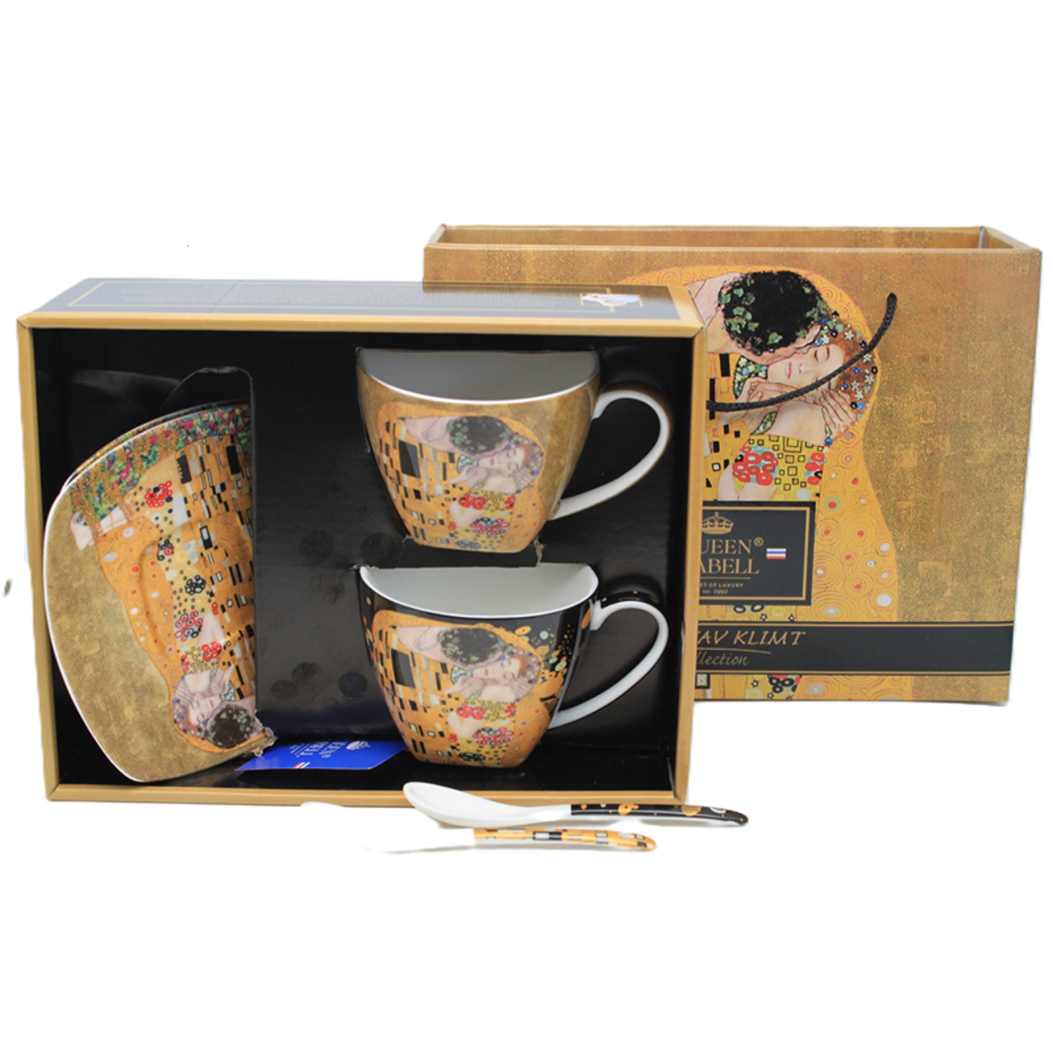 Sada 2 porcelánových šálků Queen Isabell, motiv Klimtův polibek, lžičky, 250 ml, W25KL60-2-19000