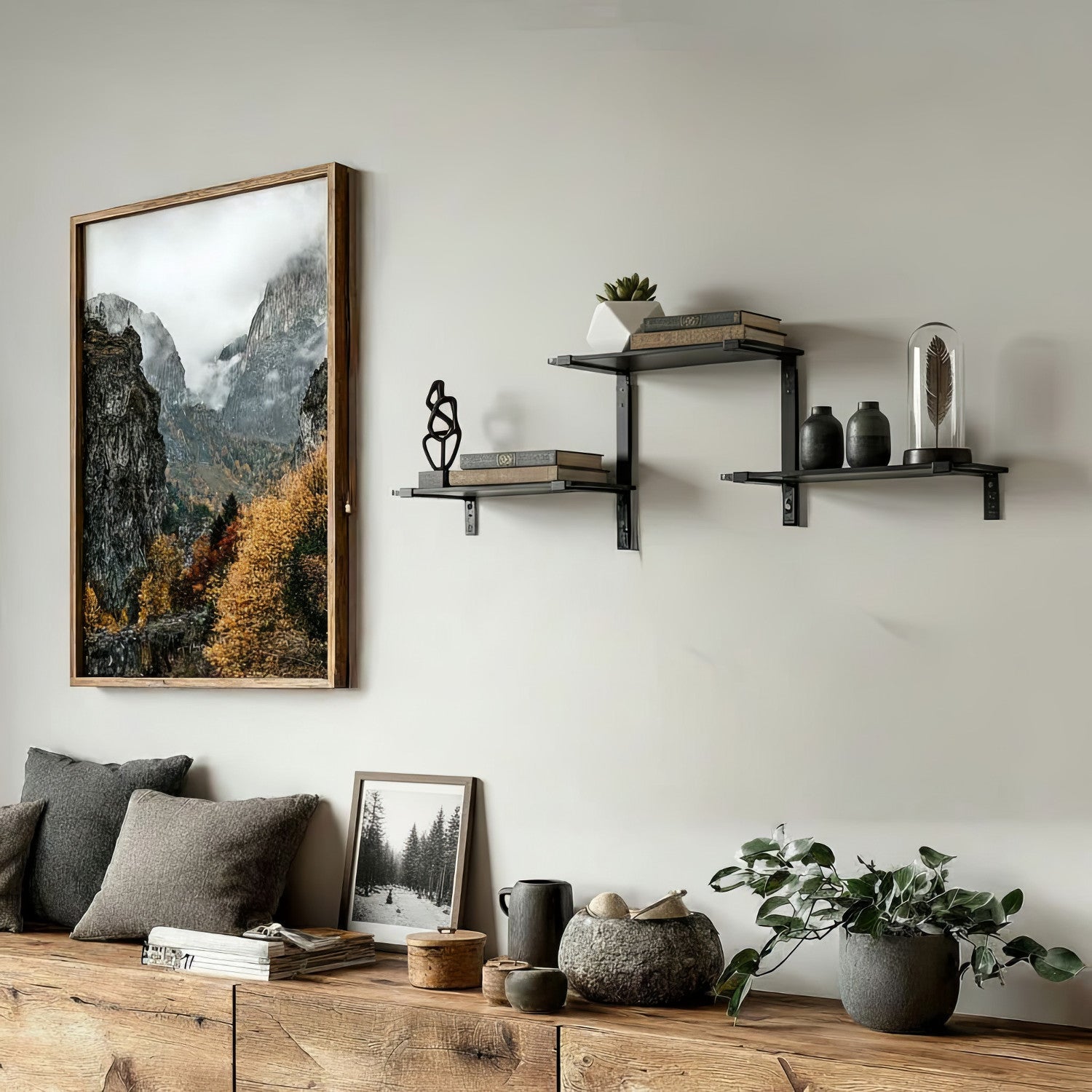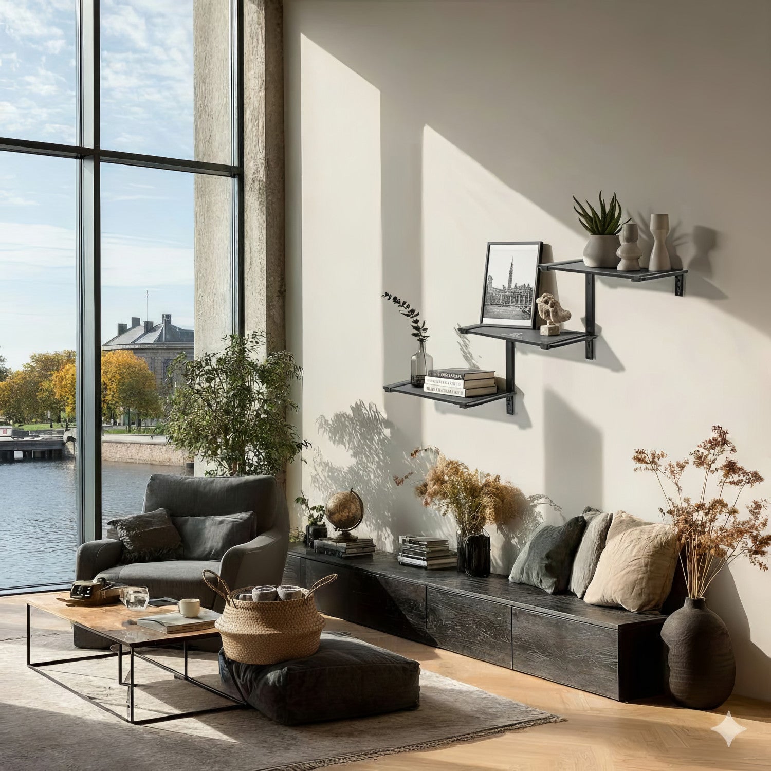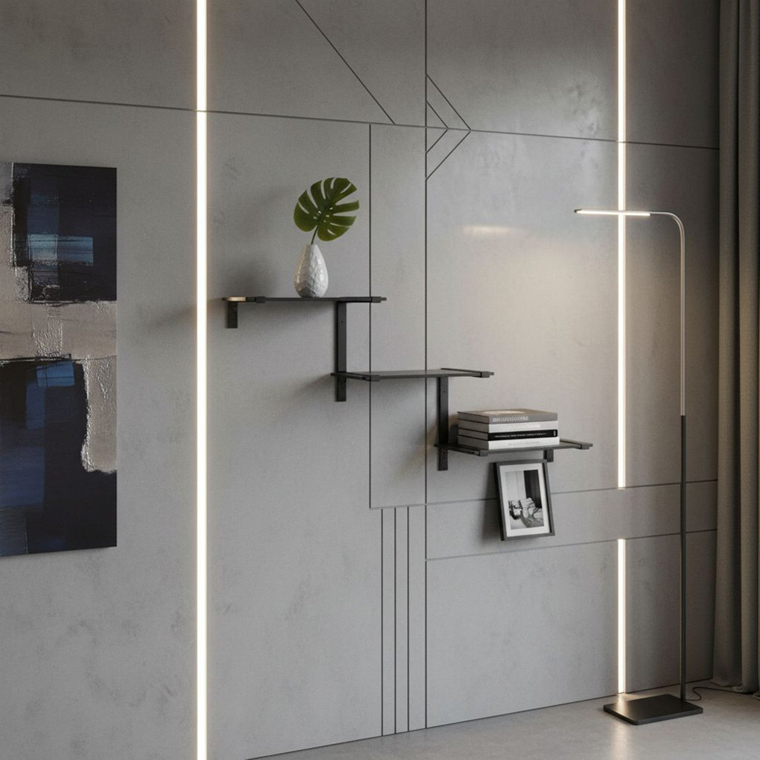 Modulární nástěnná police RTV trojitá 30 kg černá