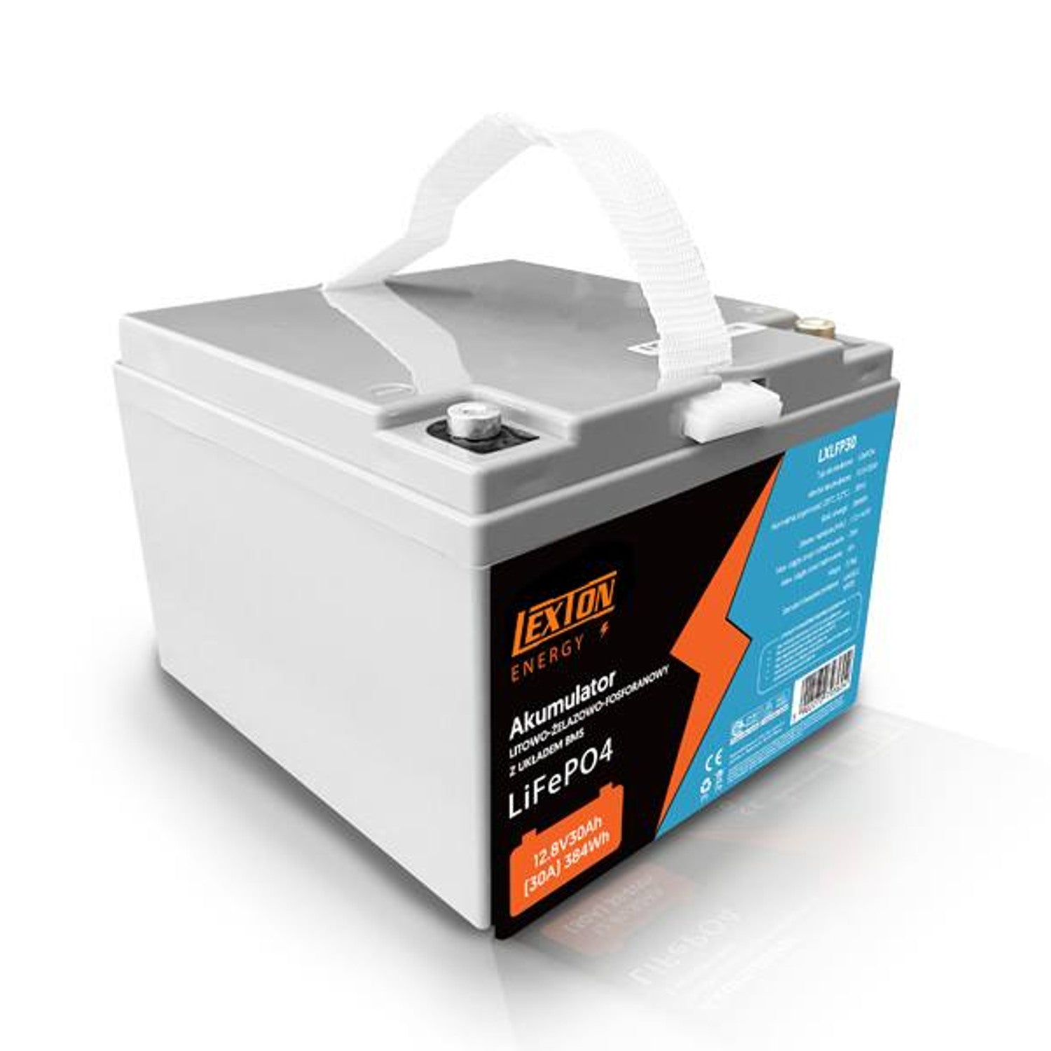Baterie LiFePo4 Lexton lithium-železo-fosfátová, s BMS, 12,8 V, 30 Ah, LXLFP30 + nabíječka LTC Energy LiFePO4
