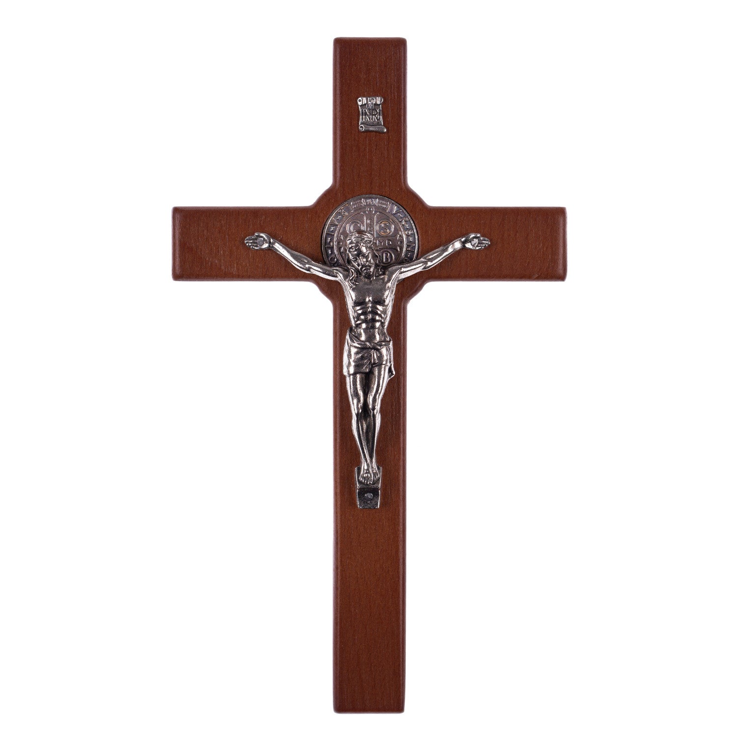 Dřevěný kříž svatého Benedikta s bronzovým pasem 18x10x1,8cm