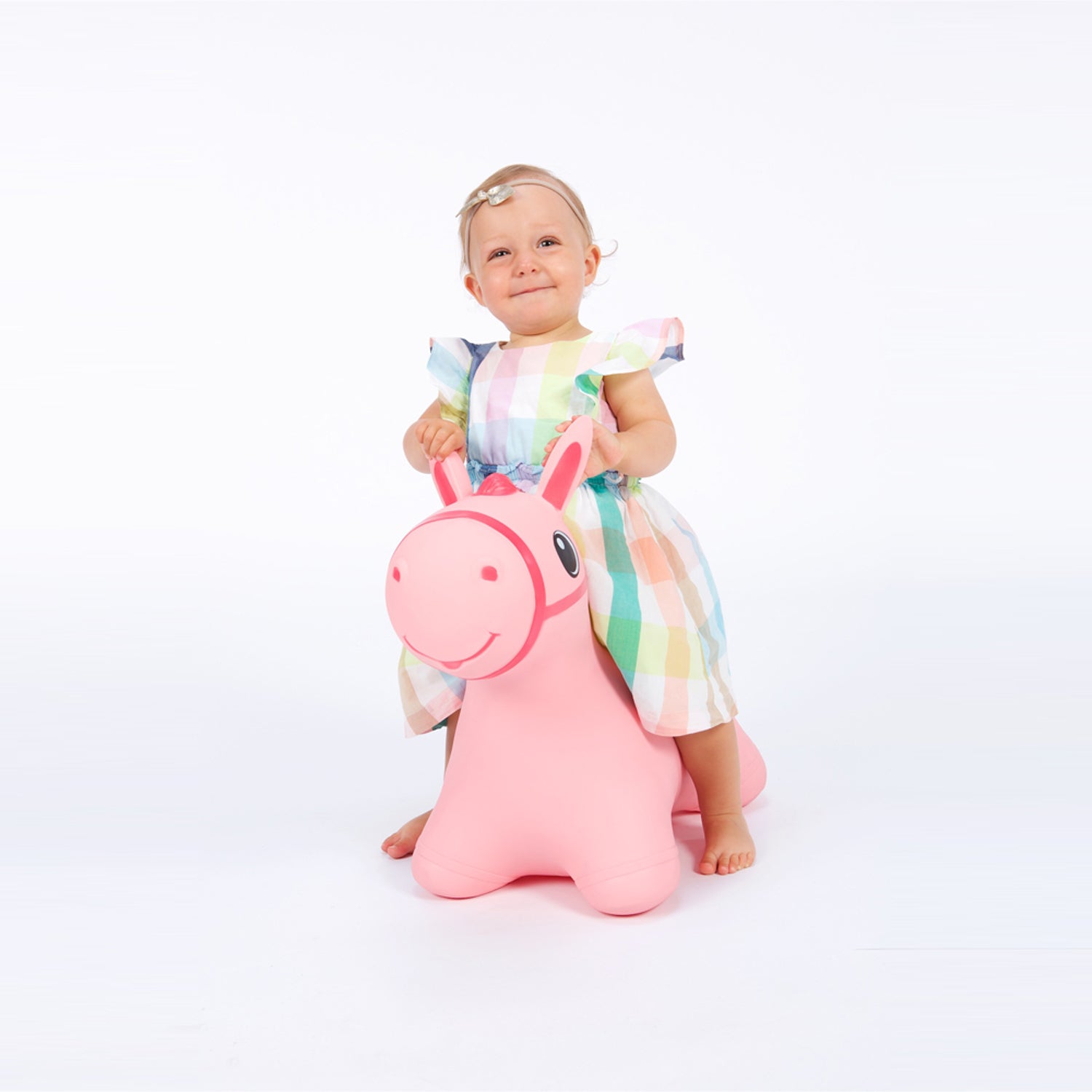 Gumové hopsadlo pro děti Hoppimals s pumpičkou - růžový kůň
