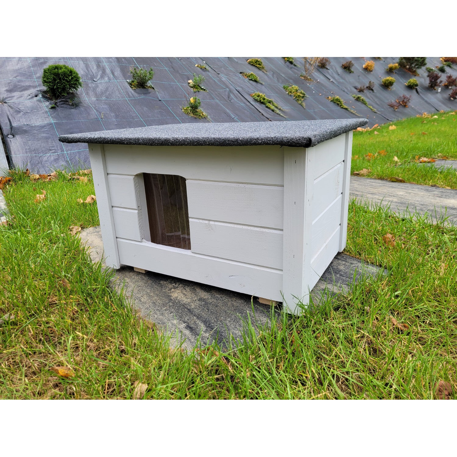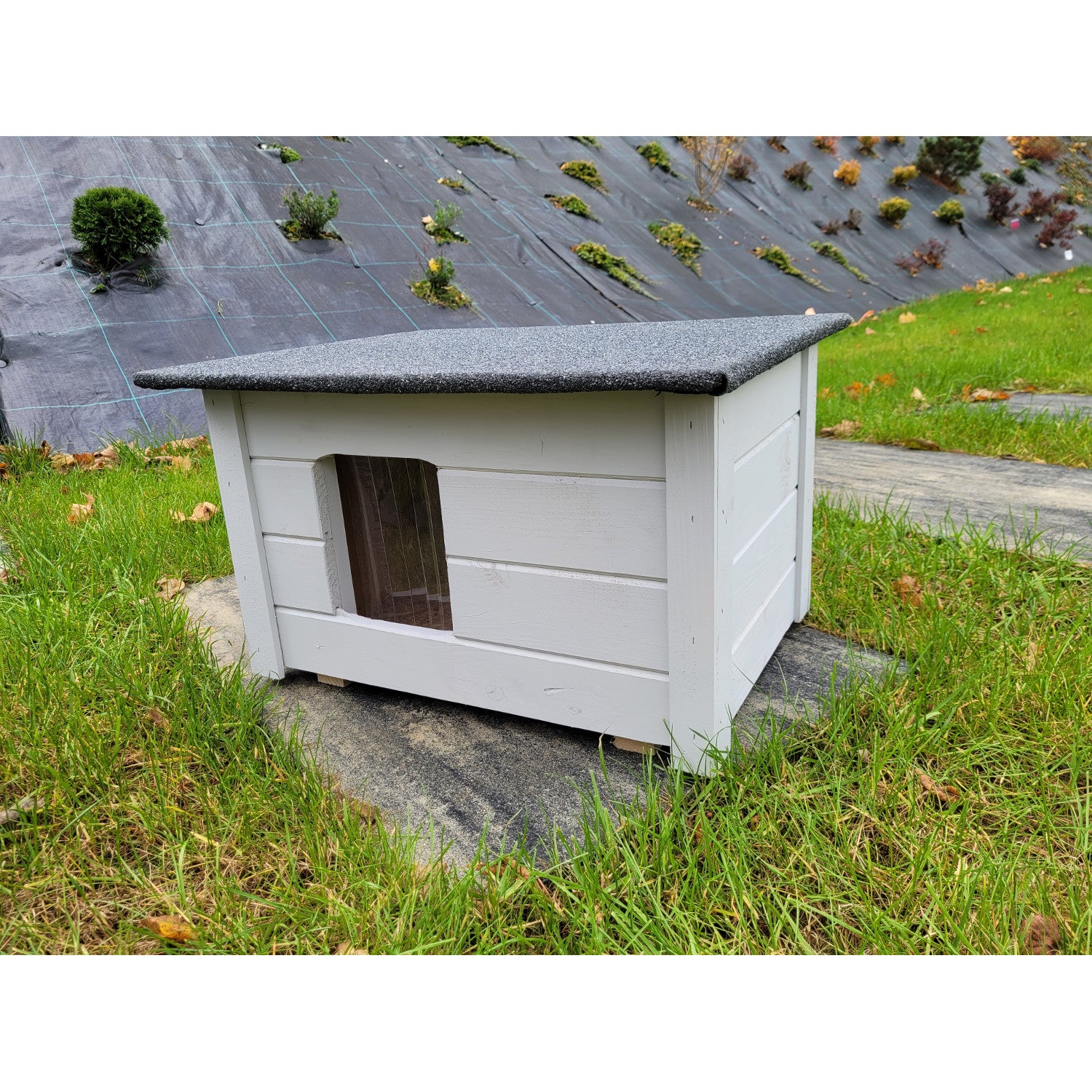 Bouda pro psy a kočky Woodok, zateplená, smrkové dřevo světle šedá