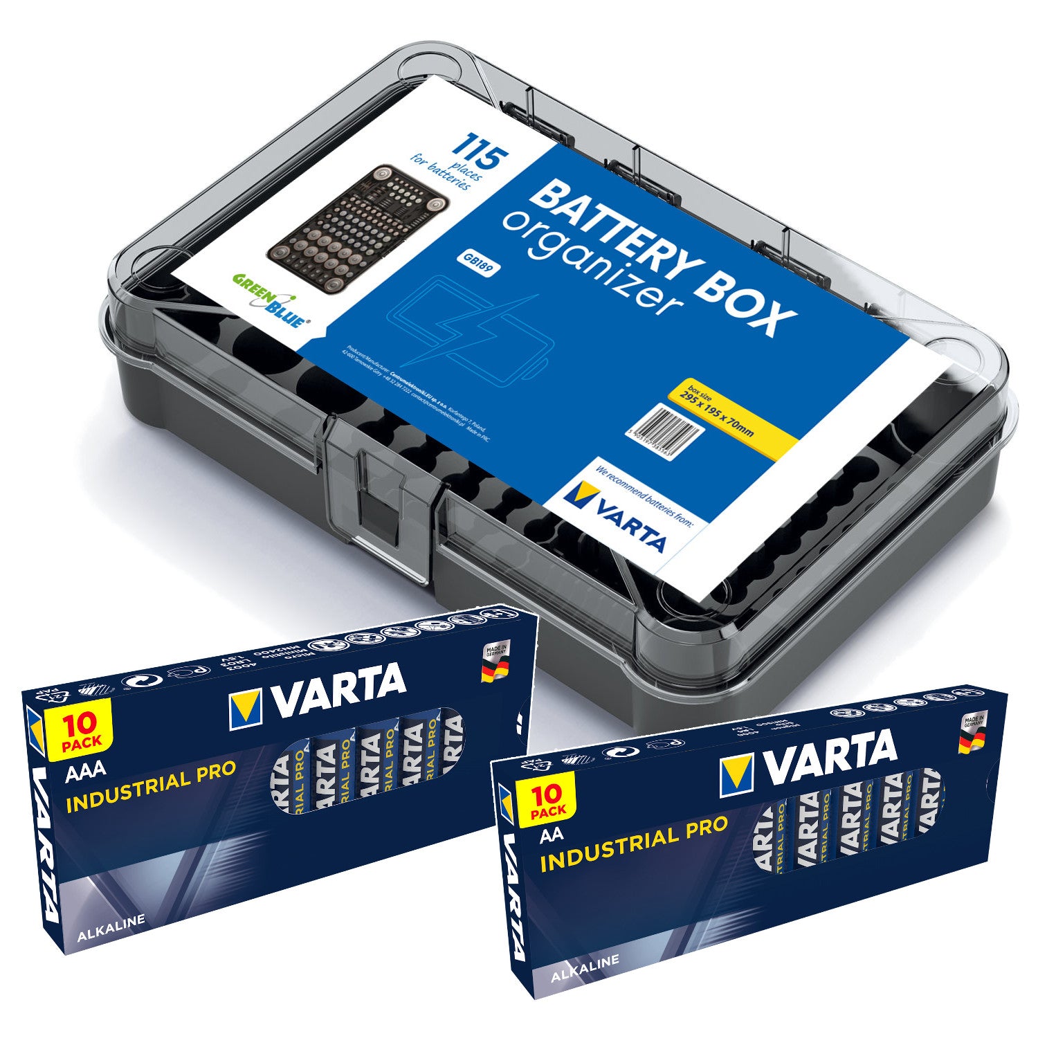 Organizér na baterie GreenBlue Varta Box GB189 + 10x baterie AA a 10x baterie AAA Varta Industrial